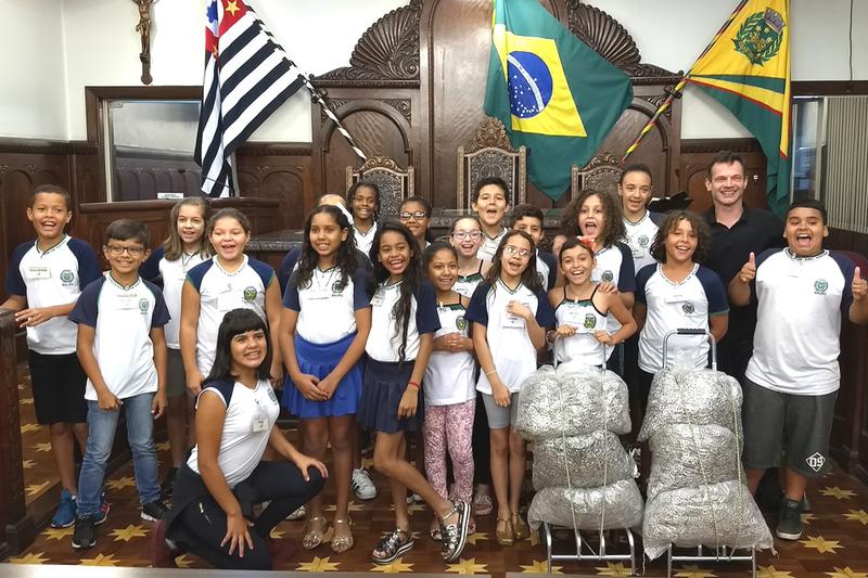 O vereador Fábio Manfrinato (PP) recebeu, nesta terça-feira (14/11), os alunos dos 4º e 5º anos da EMEF Lourdes de Oliveira Colnaghi. As crianças entregaram ao parlamentar 20 quilos de anéis de latas em alumínio, que, por meio da campanha promovida pela ONG Anéis Solidários, ajudarão na compra de cadeiras de rodas, destinadas a pessoas de baixa renda com deficiência.