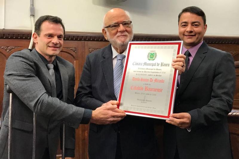 Em noite de festa no Plenário da Câmara Municipal, o professor Danilo Santos de Miranda, diretor do SESC no Estado de São Paulo, tornou-se, oficialmente, o mais novo Cidadão Bauruense, ao receber o referido Título, conferido pelo Poder Legislativo. A iniciativa partiu dos vereadores Fábio Manfrinato (PP) e Serginho Brum (PSD), autor do projeto que resultou no Decreto Legislativo 1.750/2017.