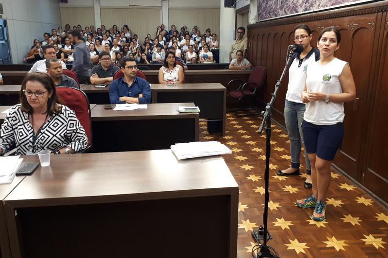 Representadas pelas docentes Danielly Aline Dionizio Paini e Flávia Pinto, destacaram que o acesso à carreira de especialista é lei – independentemente do impacto financeiro. Reforçaram que já atuam como especialistas, mas que não recebem os valores da ATP, tem dias de abono descontados do salário e que são obrigadas a levar trabalho pra casa – como preparar aulas e até lembrancinhas de datas comemorativas para o aluno.