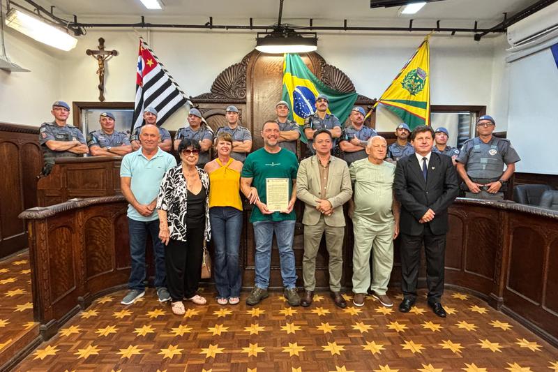 Na tarde desta quinta-feira (12/02), o vereador Cabo Helinho (PL) entregou a Moção de Aplauso n.º 308/2025 ao Senhor Renato Venturini por sua trajetória profissional exemplar e relevante contribuição à sociedade bauruense e ao Estado de São Paulo.