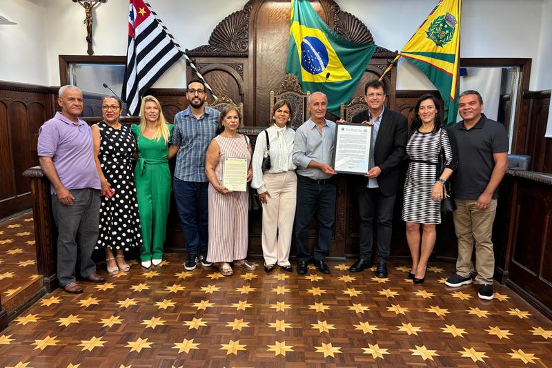 Na manhã desta quinta-feira (19/03), a Câmara Municipal de Bauru entregou a Moção de Aplauso n.º 19/2026 a Moacir Vieira dos Santos. A iniciativa foi do vereador Dário Dudário (PSD).