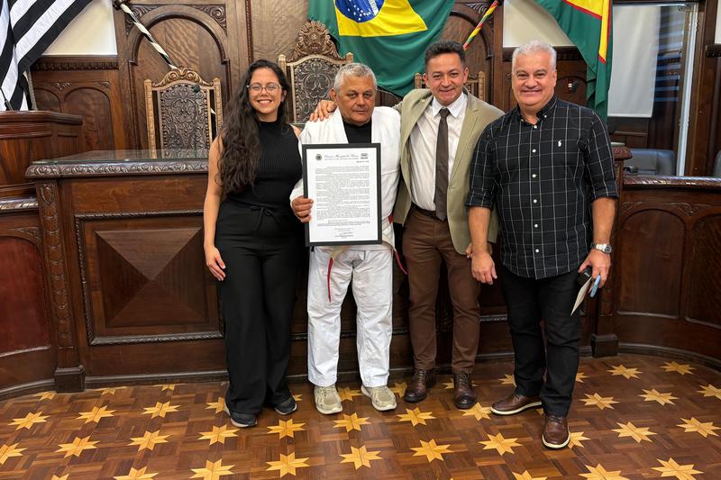 “Você é um grande exemplo para nós, para a cidade e para as novas gerações”, disse Dário Dudário, que exaltou a trajetória profissional do homenageado.