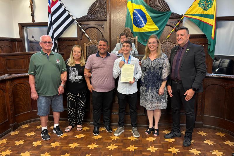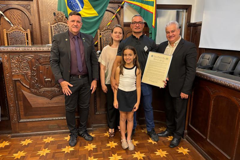 O vereador Junior Lokadora (Podemos) presidiu a cerimônia, que também contou com a presença de Pastor Bira (Podemos). Já a entrega da homenagem coube ao proponente da moção.